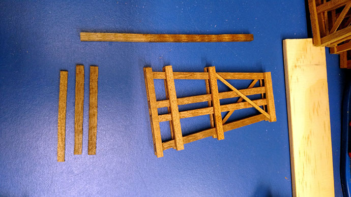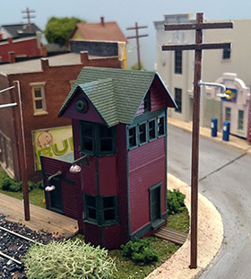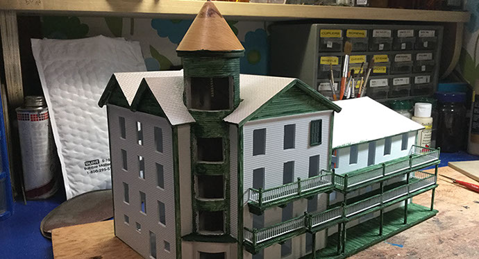 Mike made a jig (background) that allows the gluing of the various sized towers needed to support the tracks.