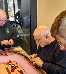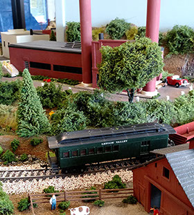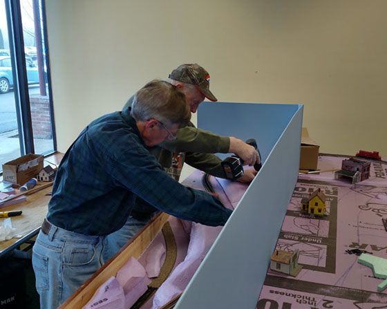 Mike Brinola has built a truly modular frame so that the layout can be easily disassembled and reassembled. This will enable the club to move the layout around throughout the entire Bicentennial Year.