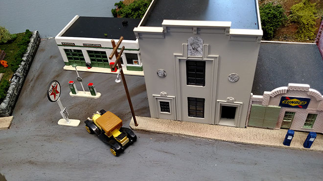 Downtown Dallas, the old gas station and the Miner's Bank (Now Citizen's Bank).